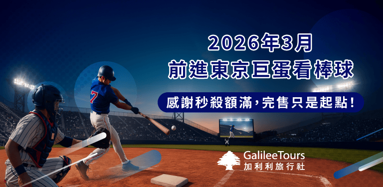加利利再次為客人搶下2026年3月東京巨蛋棒球賽的珍貴席位,感謝各界熱烈支持,我們【門票+飯店】產品已全數售罄!