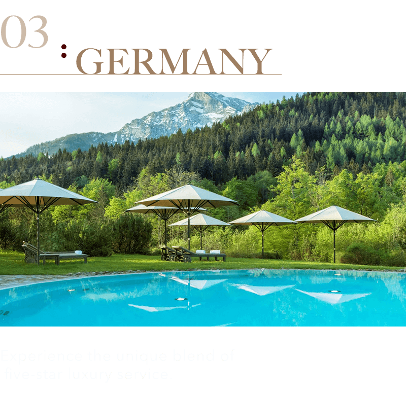 5星貝希特斯加登Kempinski Hotel Berchtesgaden/或5星薩爾茲堡薩赫飯店Hotel Sacher Salzburg(若客滿或休息,將改住鄰近城市4星飯店,並每人退NT1,500元)