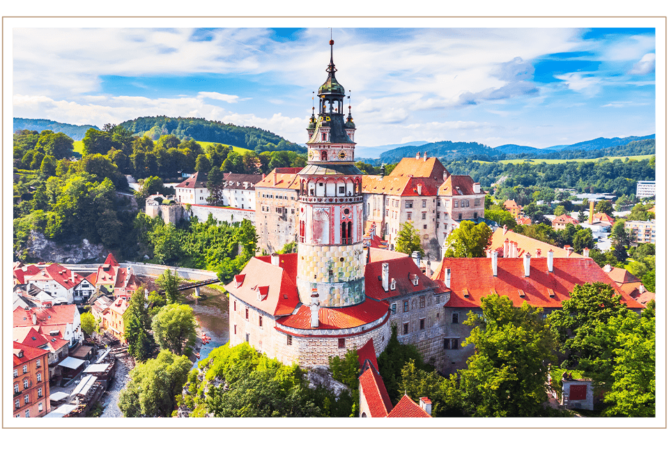 4星庫倫洛夫Hotel OLDINN或Hotel Grand或Bellevue Hotel Cesky Krumlov或Hotel Ruze/或4星巴德傑維契Grand Hotel Zvon/或4星琥珀卡Wellness Hotel Diamant/或鄰近城市4星飯店