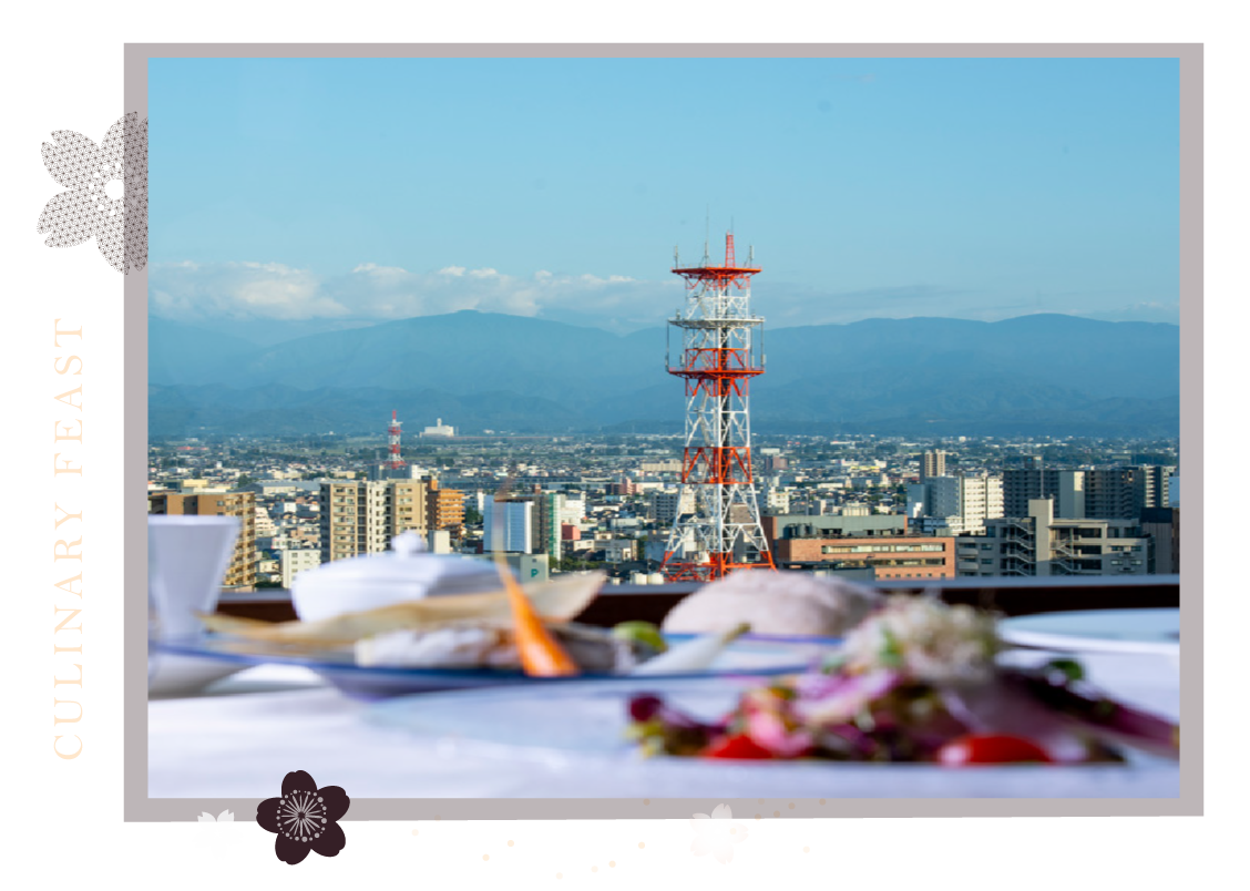 入席60公尺高的明亮空間,擁享360度全景視野,飽覽立山連峰的雄偉壯麗。餐廳嚴選富山縣的山海珍饈,呈獻西式季節佳餚。