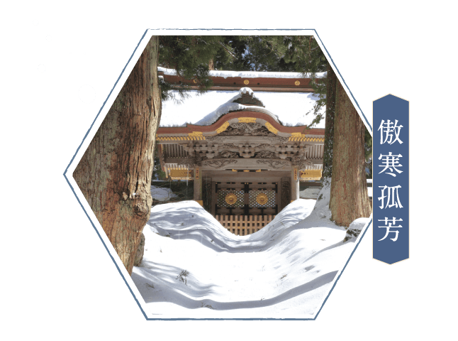 冬雪如雲層般綿密翩覆,典雅寺院莊嚴矗立,宛若一片傲寒之中,堅毅綻放的孤芳。
