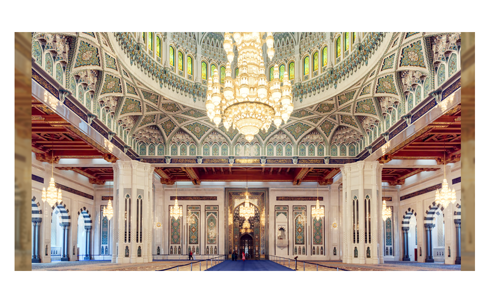 宛如「聖潔之花」的潔白建築,是阿曼王國的主清真寺,精緻的鏤花天花板、幾何圖騰,詮演伊斯蘭世界的永恆美學及信仰。